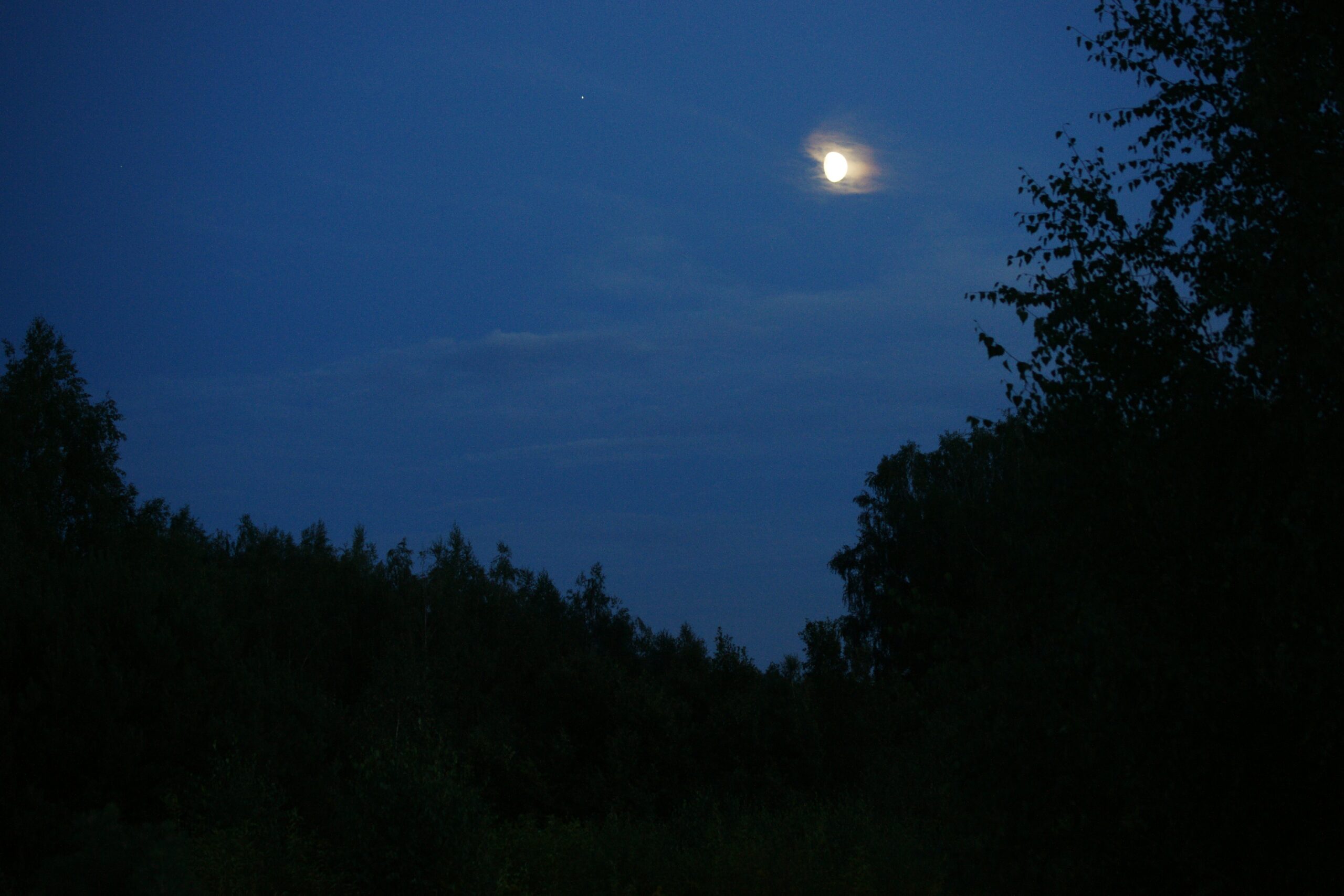 Była noc. Granatowa. Stałam nad brzegiem jeziora. Jego tafla była nieporuszona, wiatr dawno poszedł spać. Ja nie mogłam zasnąć. Stałam tak i patrzyłam w dal na ledwie widoczną linię, oddzielającą niebo od wody. A może łączącą je ze sobą? Trwało to jakiś czas. A ja nie chciałam dłużej czekać. Zrobiłam krok, potem drugi i kolejne. Dwa księżyce