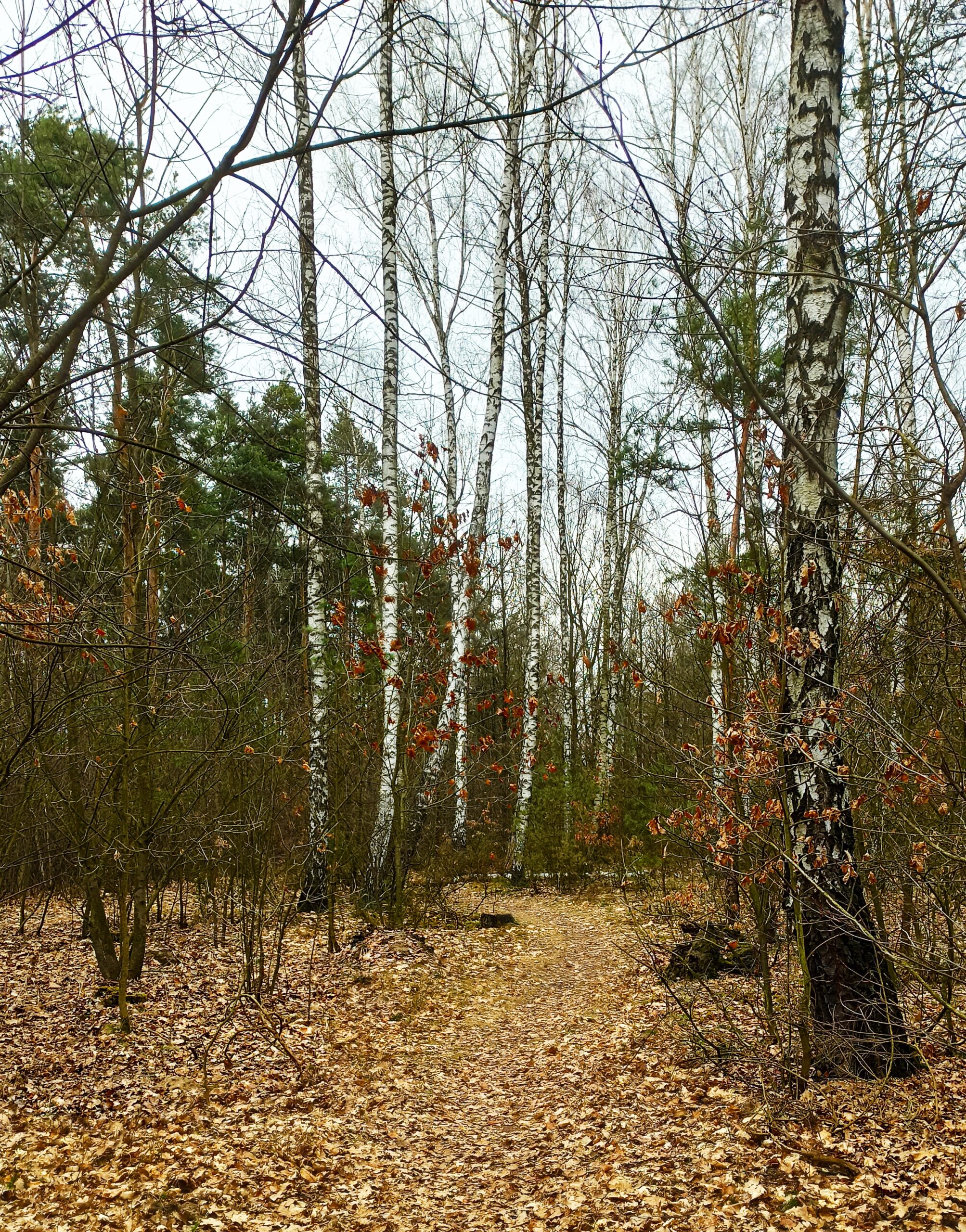Po godzinie wędrowania w tym lekkim stanie ducha dotarłam do brzozowego lasu. Już wiedziałam, że tak musiało się stać. Kocham brzozy, są piękne niezależnie od pory roku i pogody. Niezależnie od tego, czy stoją same, czy w grupie, czy porastają urozmaicony teren, czy zwykły ugór, który czynią zawsze niezwykłym.