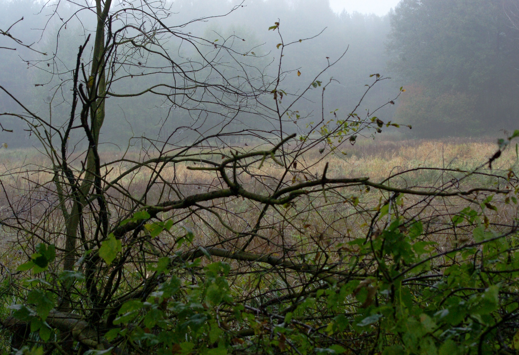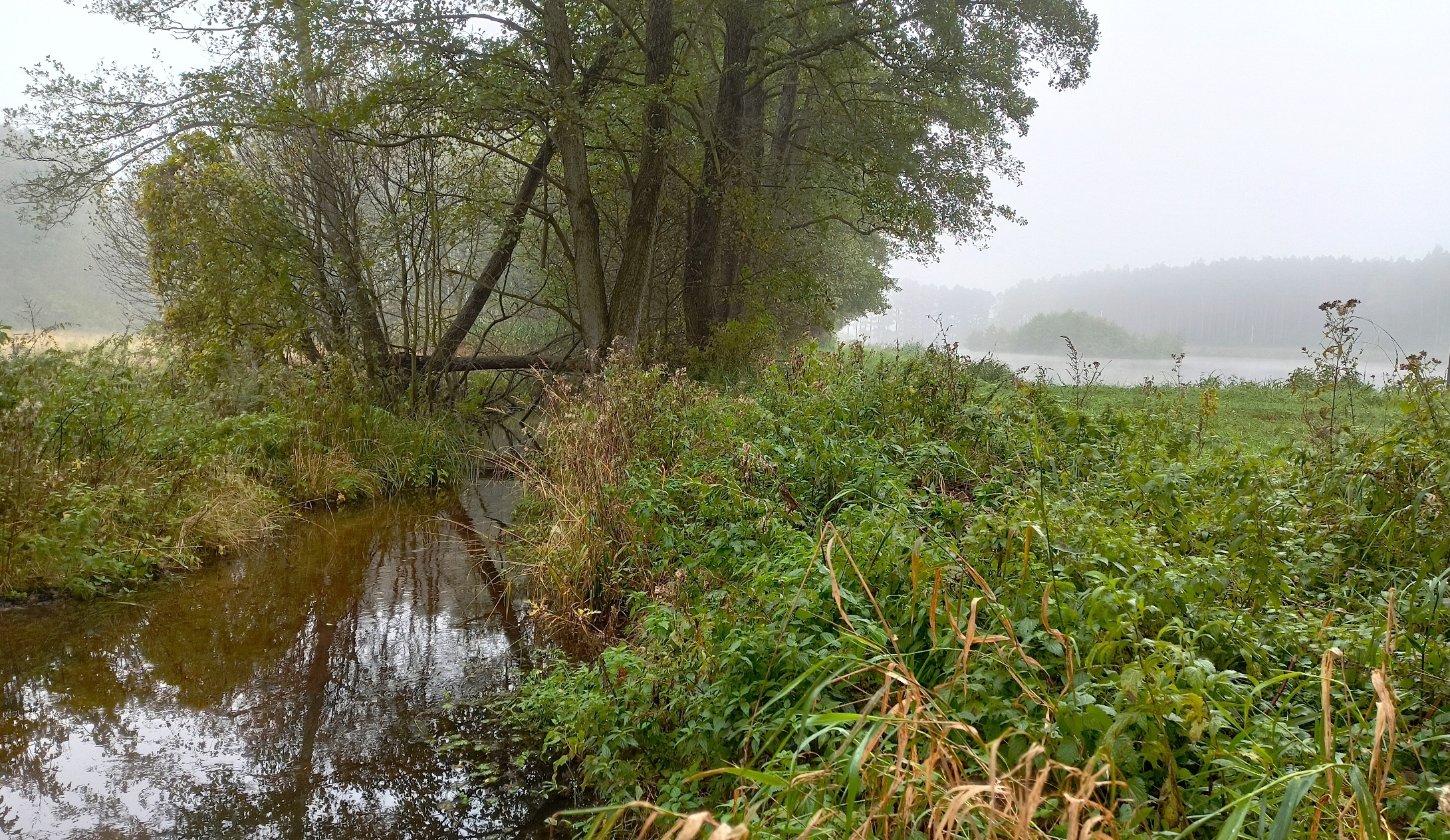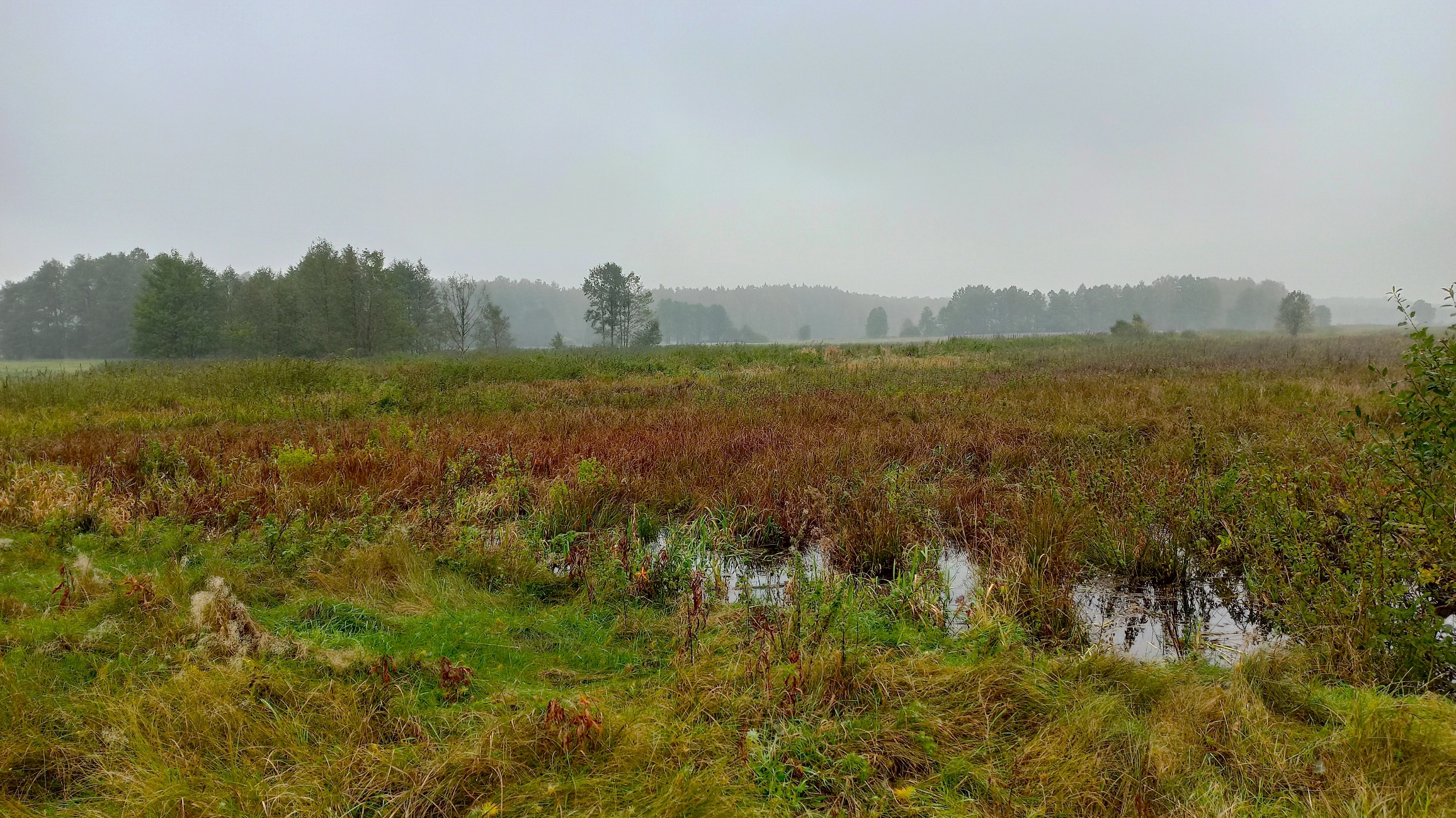 Wczoraj szłam tą samą groblą. Po prawej stronie staw, jakże był spokojny w jesiennej mgle. Po lewej…, nie już nie uładzona łąka, ale podmokła, bagienna, porastająca dziką trawą, krzewami, poprzecinana strumieniami. A dookoła las. Czy pamiętał mnie, tę dziewczynkę sprzed prawie 50 lat, przepełnioną lękiem i fascynacją nieokiełznaną naturą?