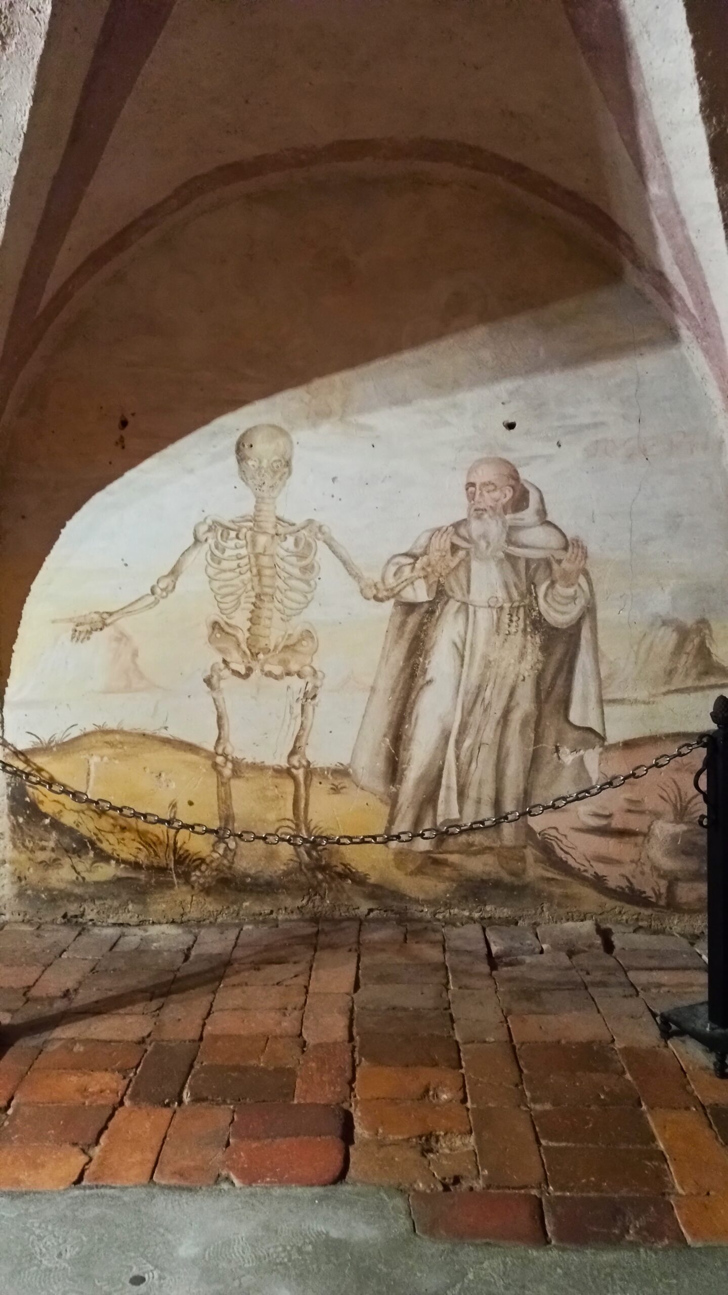 Ściana krypty jest ozdobiona malowidłem przedstawiającym taniec śmierci ? alegorię Śmierci zapraszającej mnicha do przejścia na drugą stronę życia.
