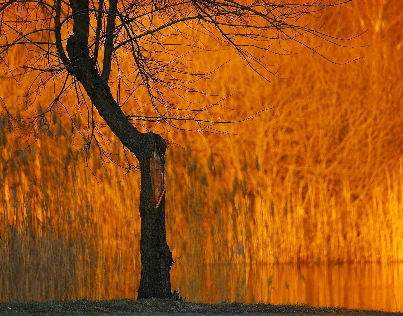 I tylko stare, poranione drzewo stojące samotnie na brzegu stawu milczało.